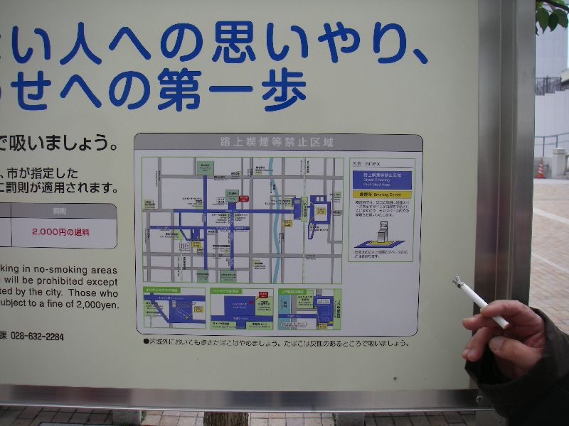 目的は タバコ! 宇都宮市内は 原則禁煙で、喫煙できる場所は ほんの数ヶ所しかありません。 違反すると\2,000-の罰金だそうです。 |