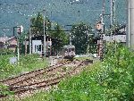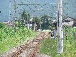 帰り際 ちょうど長野電鉄の電車が走ってきました。