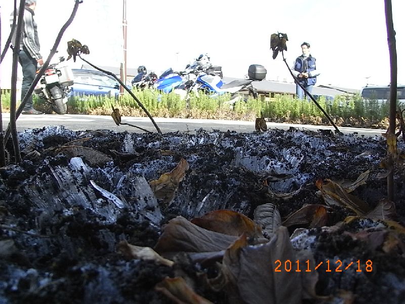 | まちの駅「新・鹿沼宿」に到着 見事な霜柱が 今日の寒さを物語っています。 |