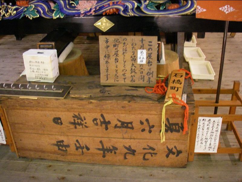 | まちの駅から歩いて、木のふるさと「伝統工芸館」を見学 鹿沼の祭りで使われる「山車」が展示されています。 |