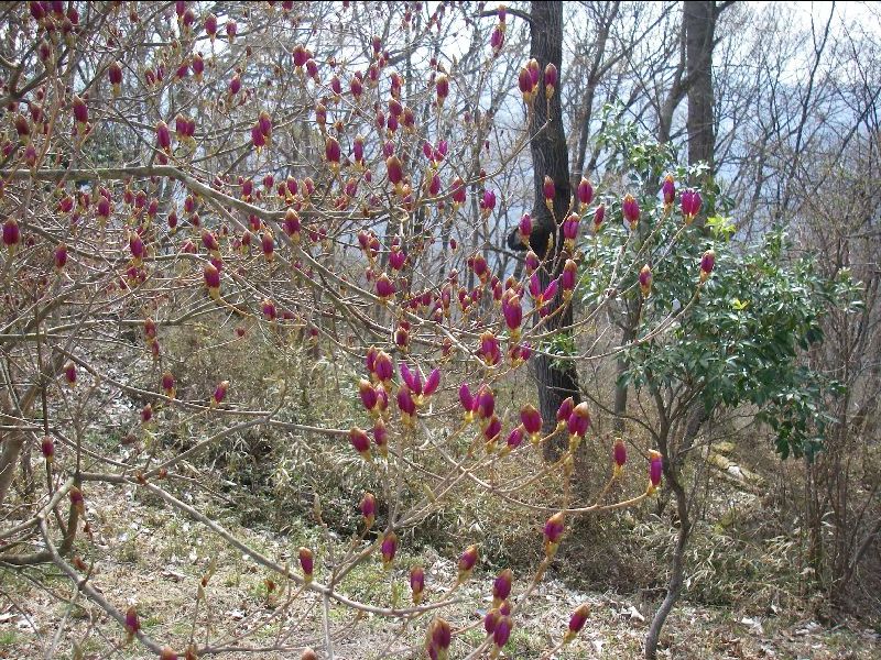 山頂周辺の桜はつぼみでしたが、開花直前の ツツジもありました
