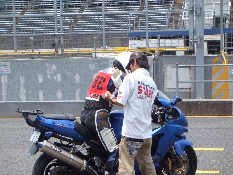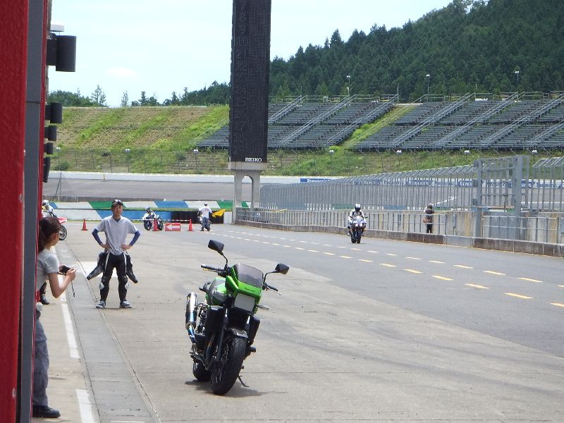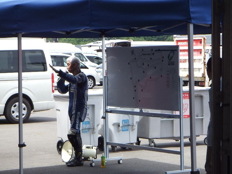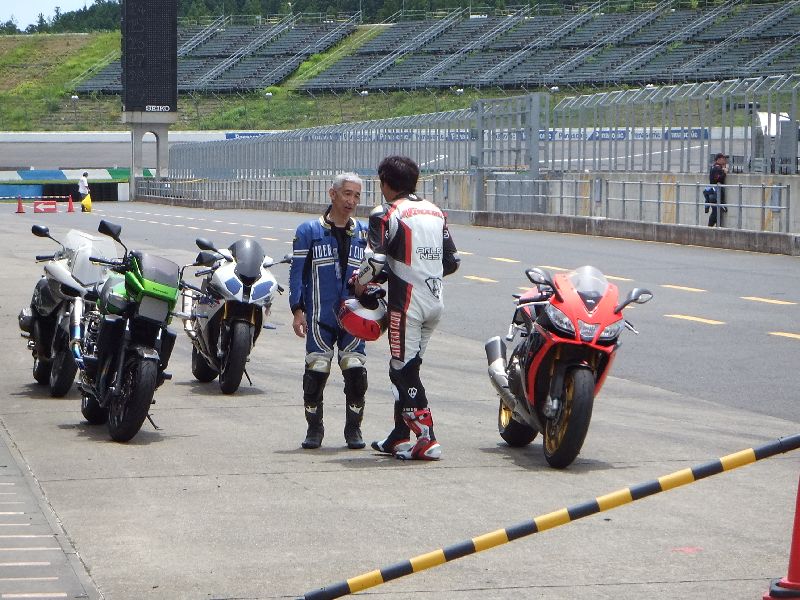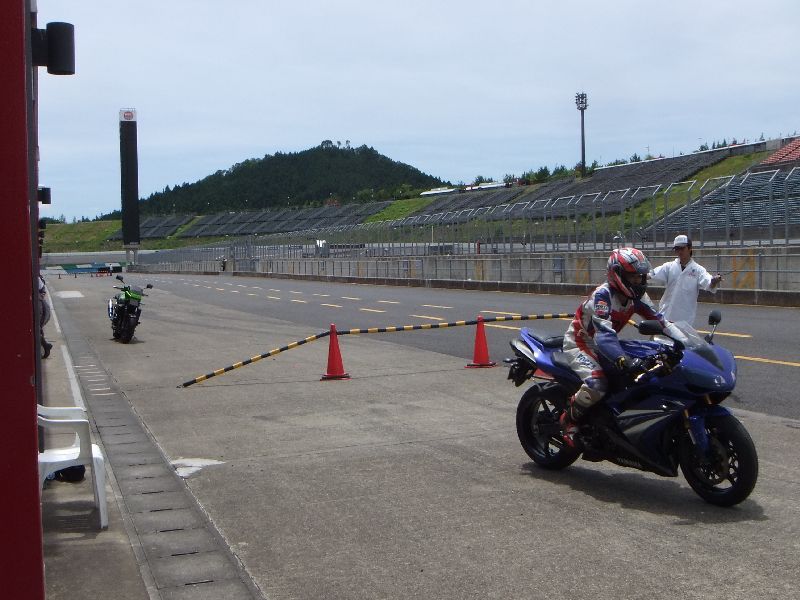 今日のように天気が良いと 温度が上がりすぎてタイヤがグリップを失いやすいので、「ギアを1つ上げてトルクを抑え気味で走ると良い」との事でした。
