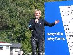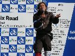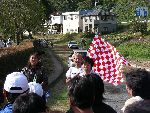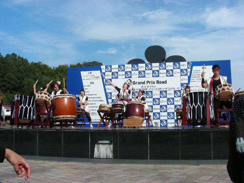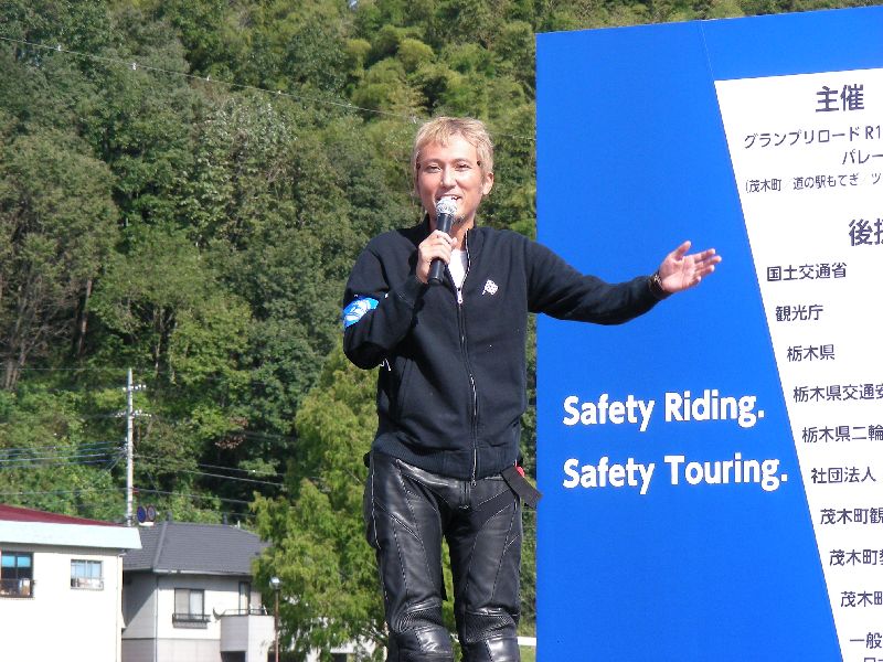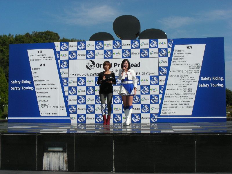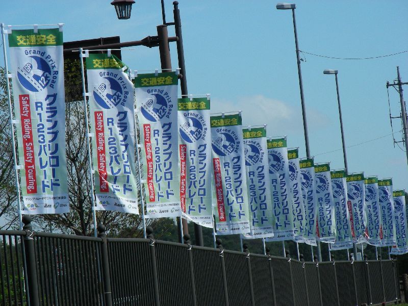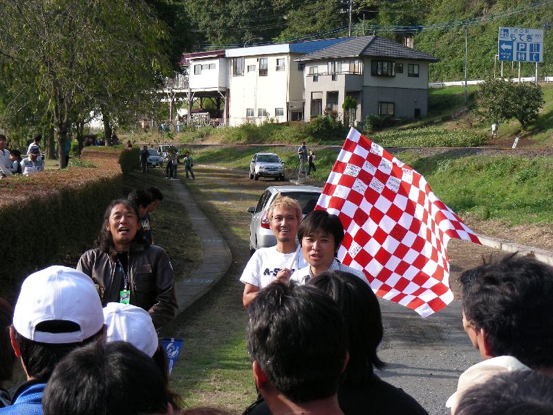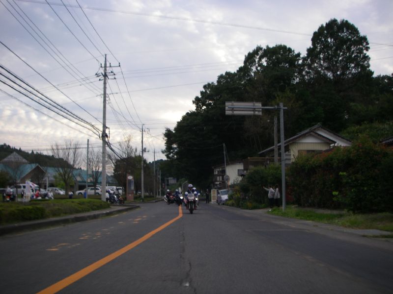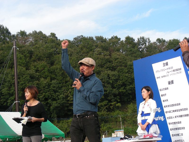 沿道の人たちに手を振りながら、ゆっくりとツインリンクを目指す |
