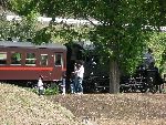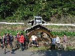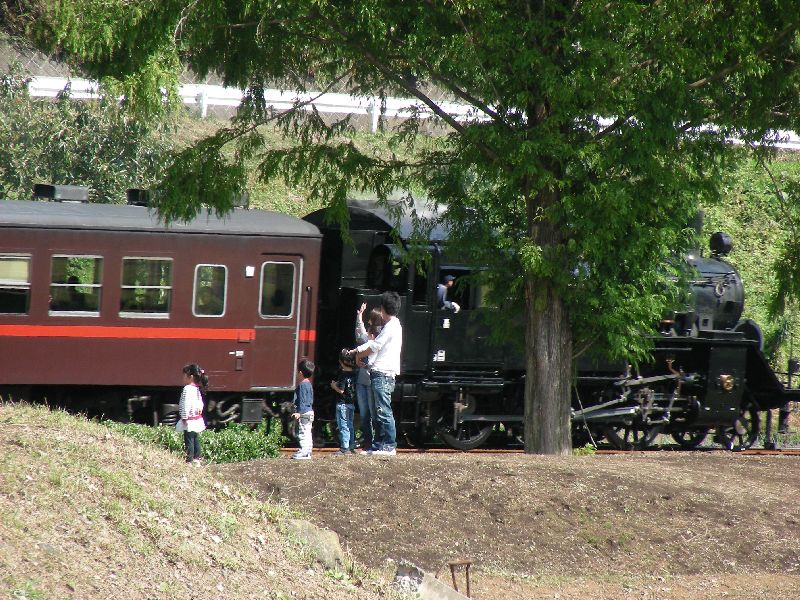 | 水車小屋の前に移動して SLをバックに記念撮影 |