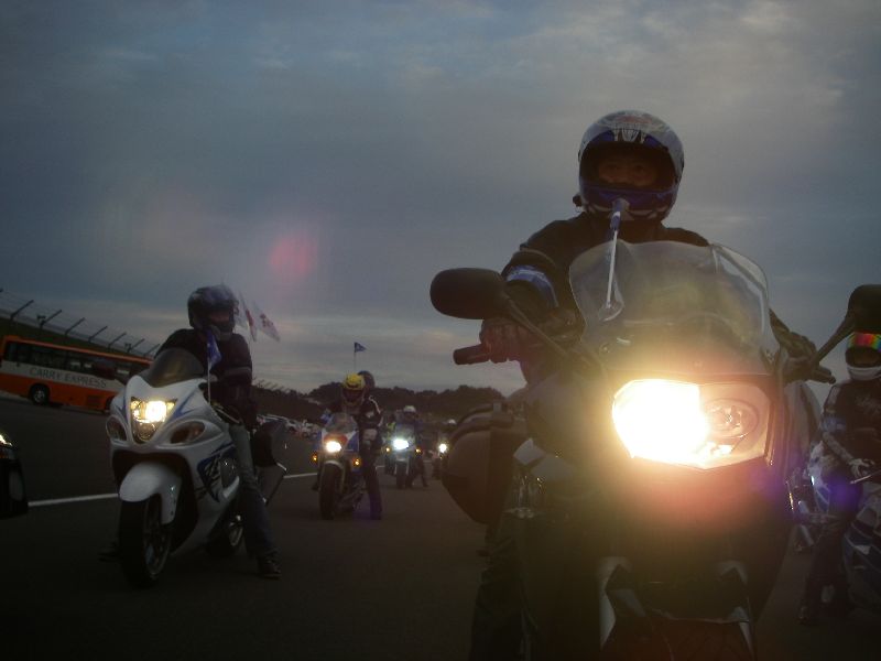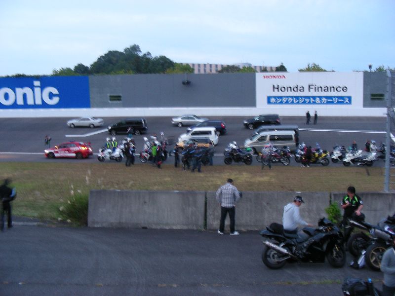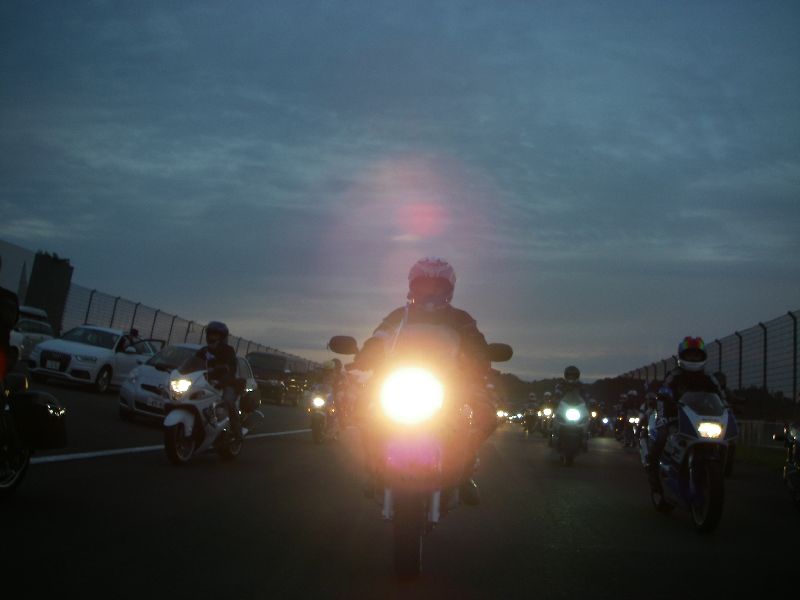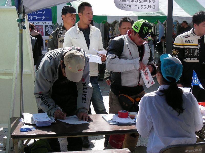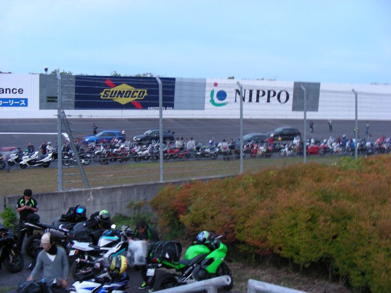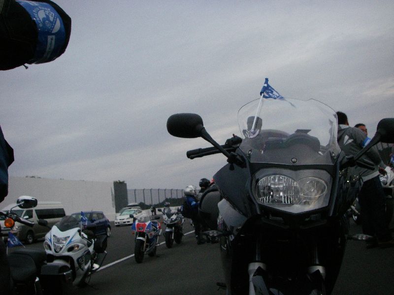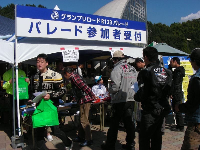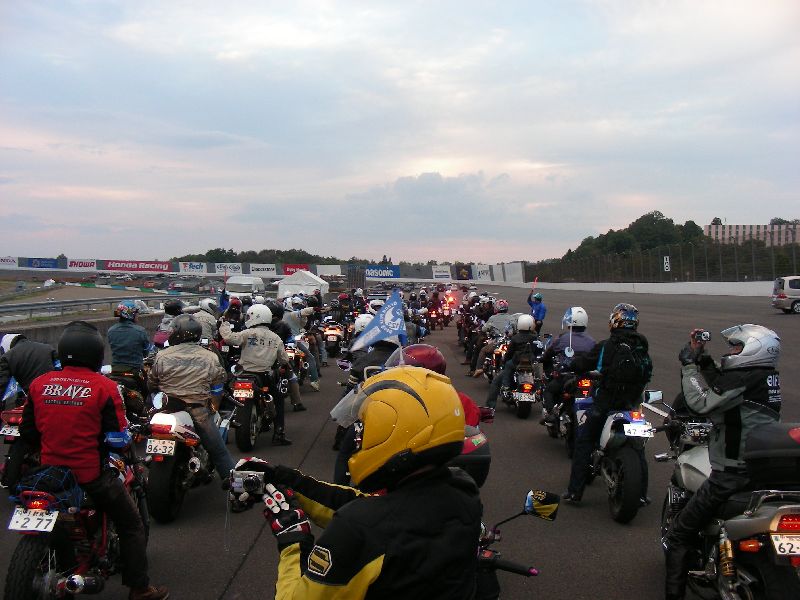イベントに参加する人は、その場にバイクを止めてメインスタンド側に移動します。 |