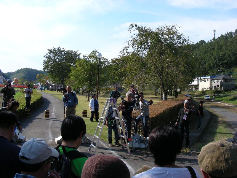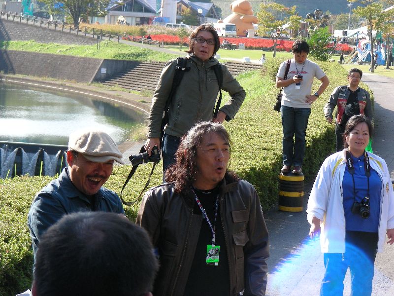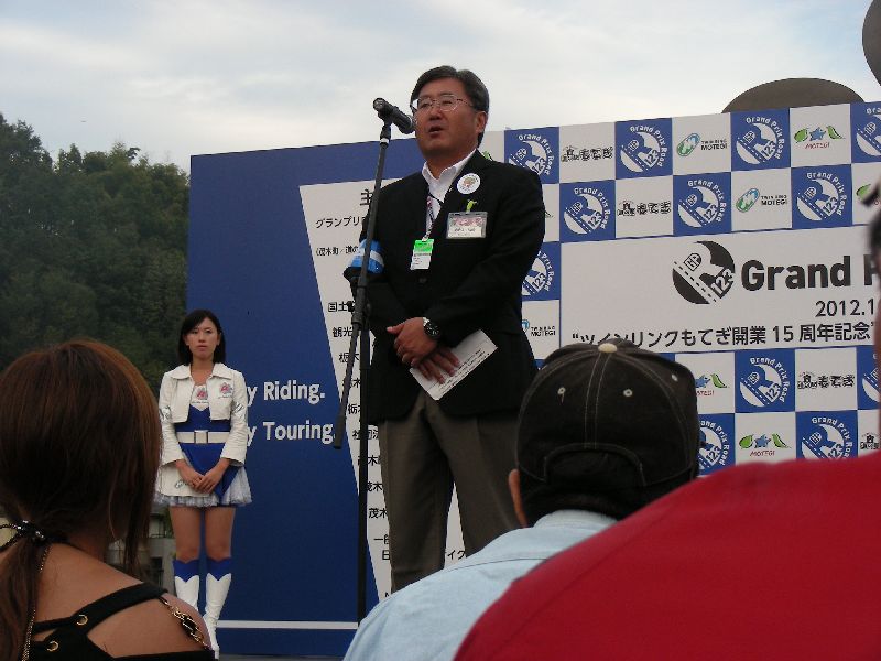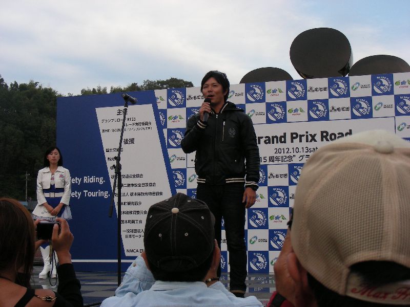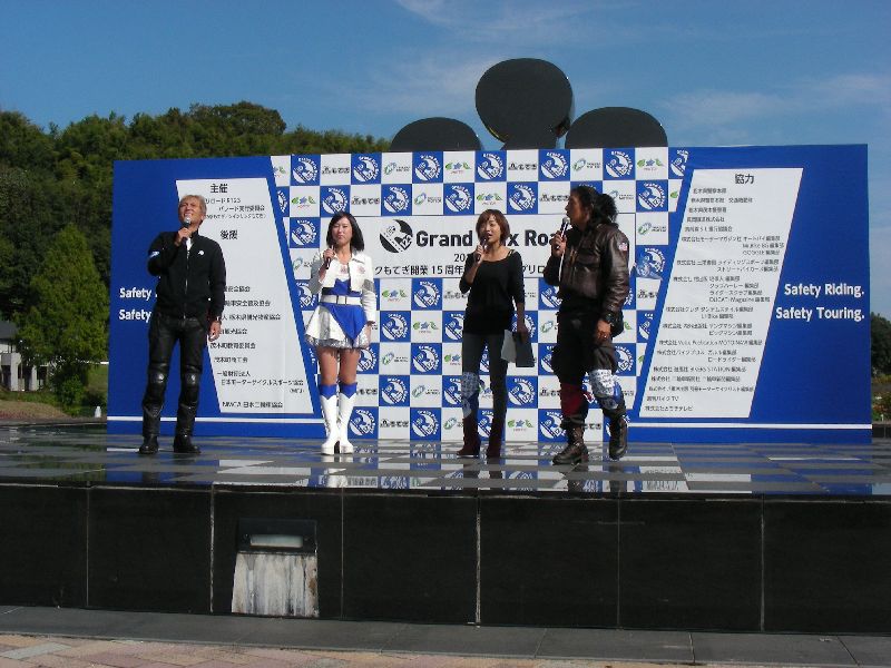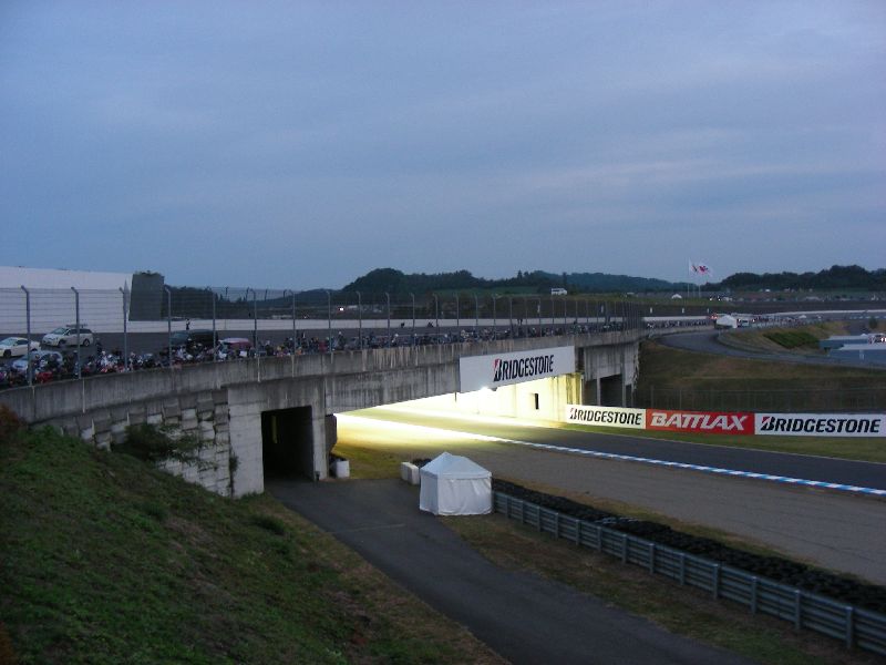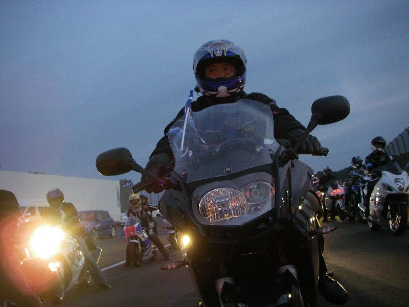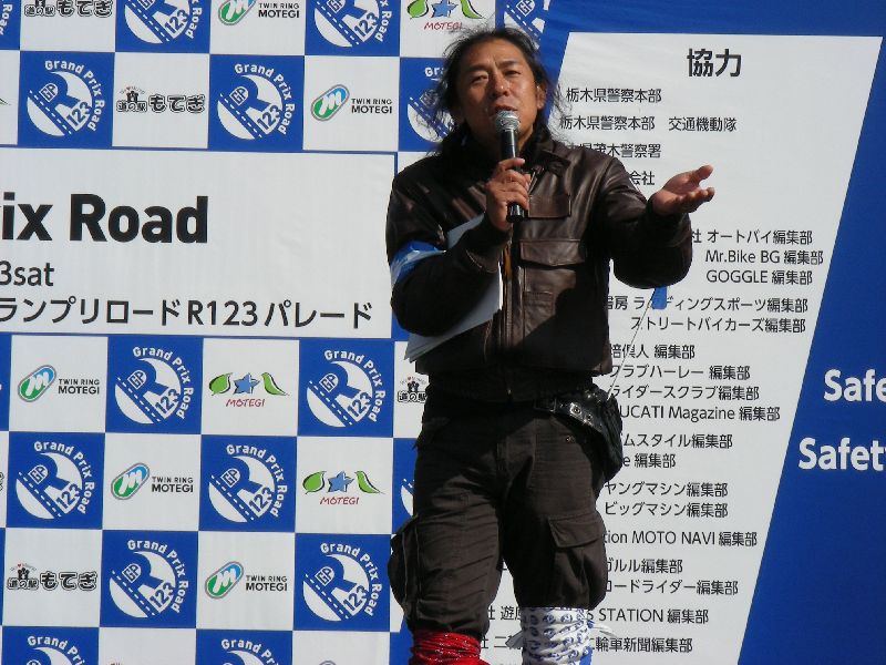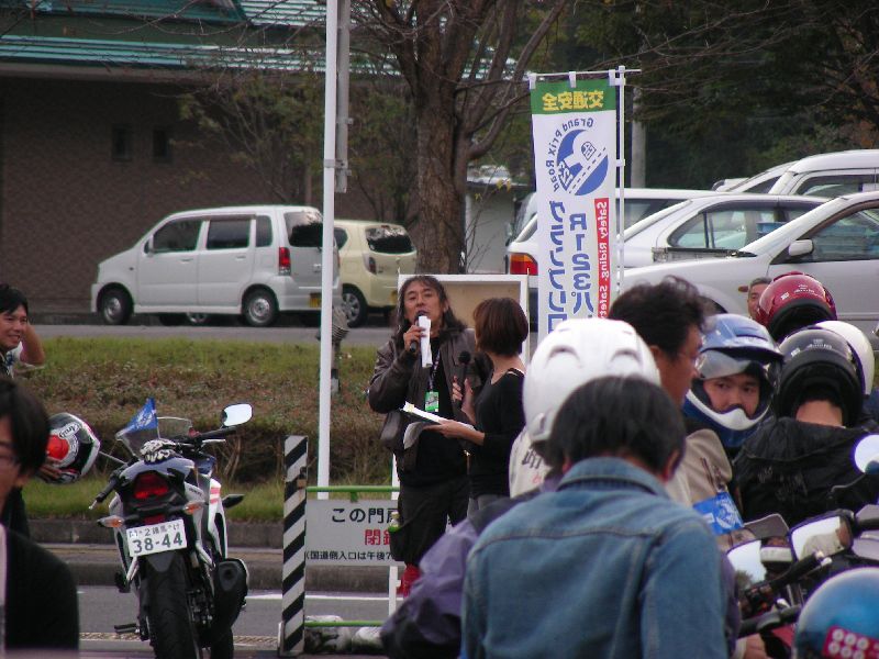 イベントに参加する人は、その場にバイクを止めてメインスタンド側に移動します。 |