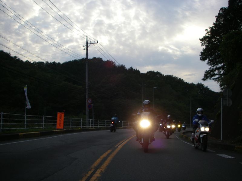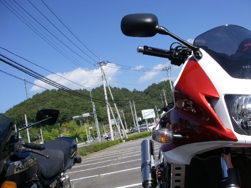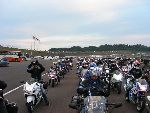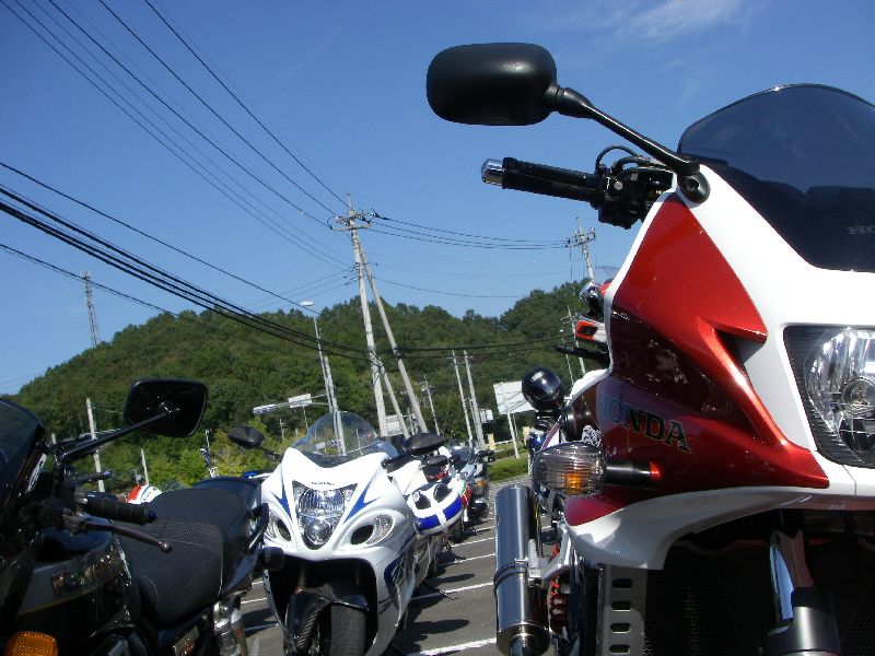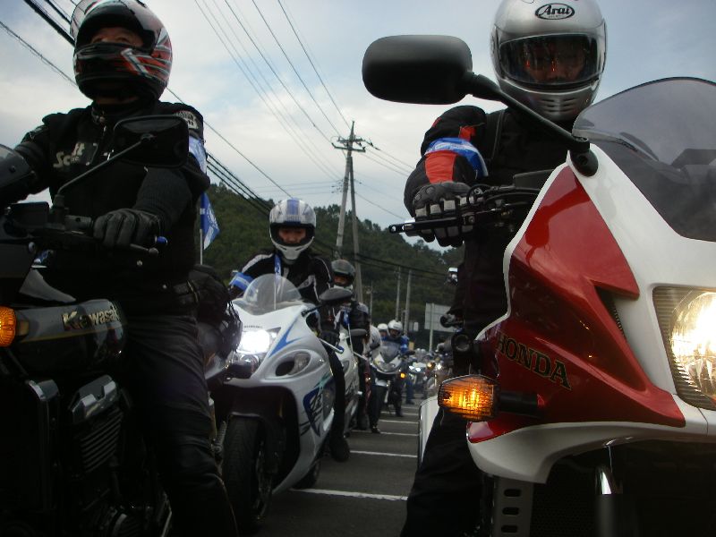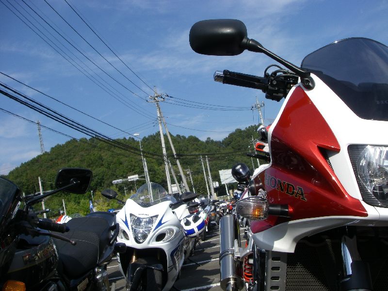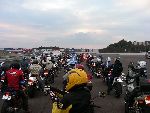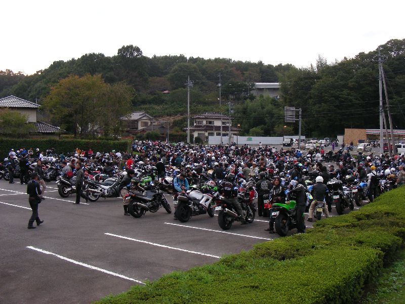 | 12:00過ぎからバイクが次第に集まり、出発時間には 駐車場を埋める勢い |