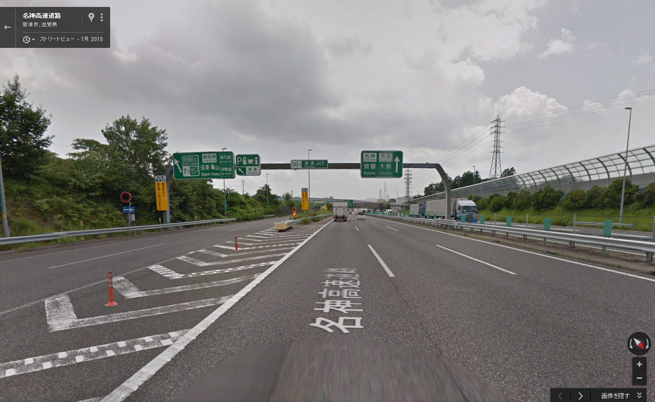 | 614km | 瀬田東Jct (左車線:宇治・大阪方面) <京滋バイパス> |