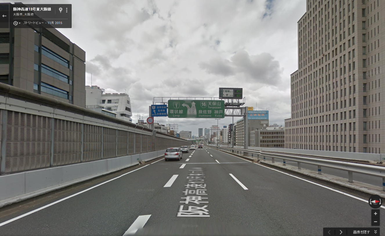 | 685km | 天保山Jct (左側:泉佐野方面) <阪神高速4号 湾岸線> |