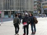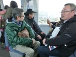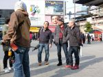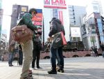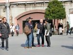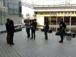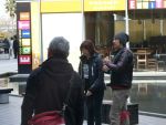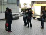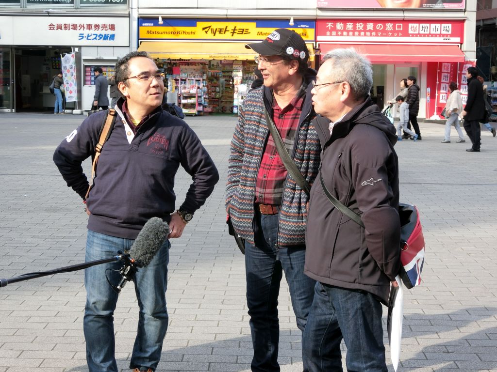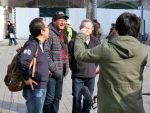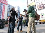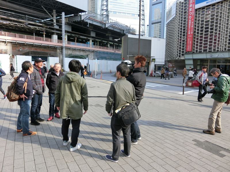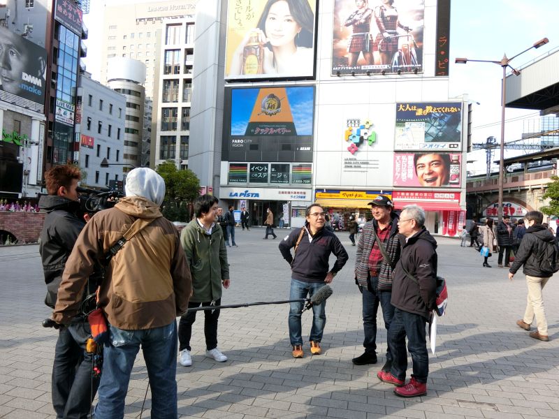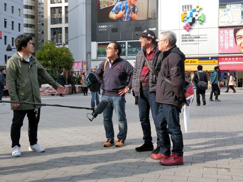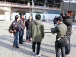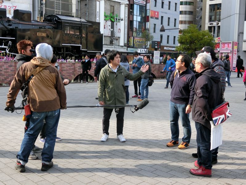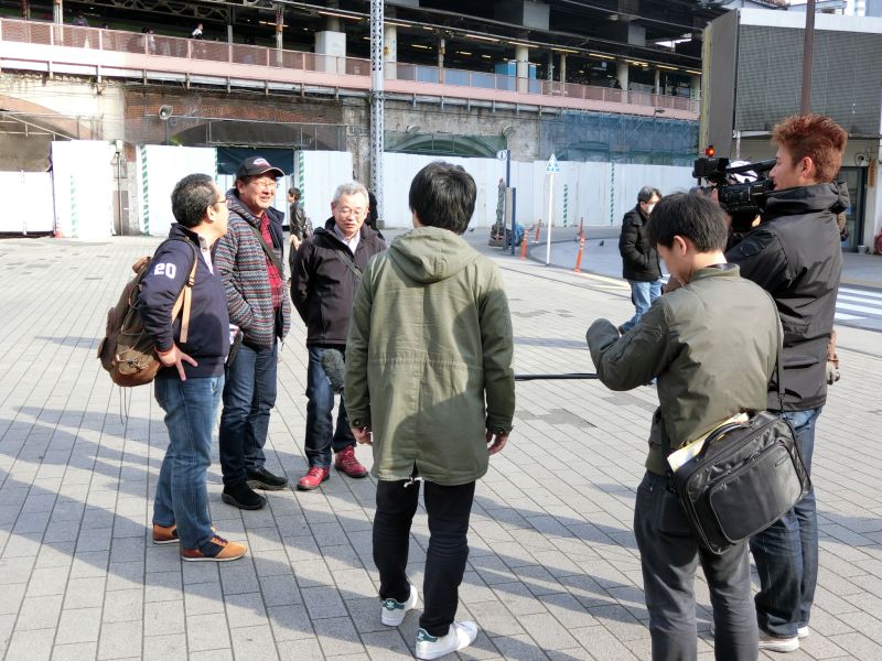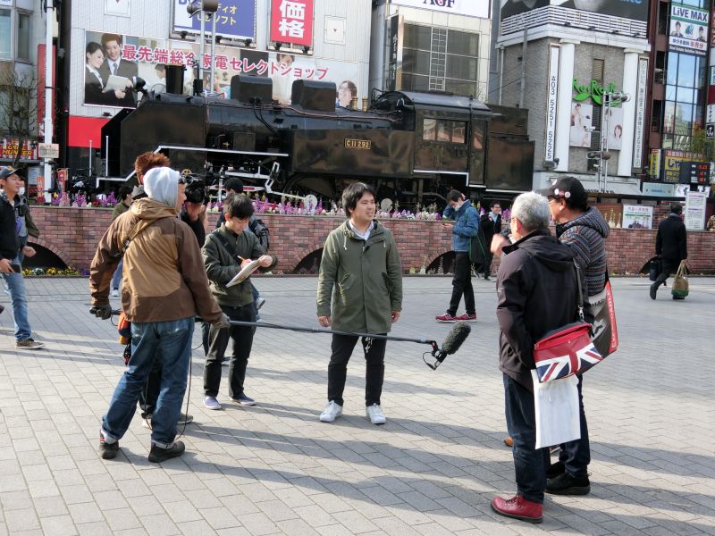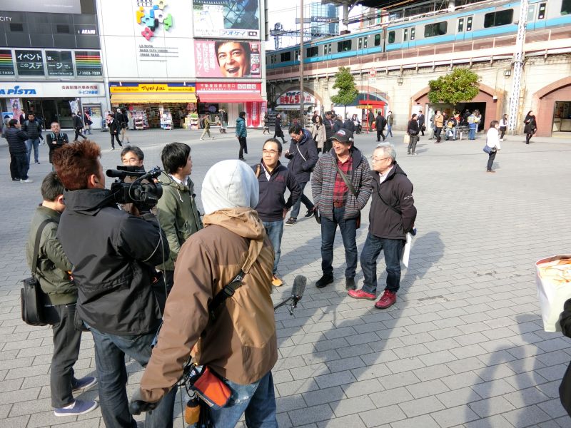 広場に出たら、TV局のレポートを受けてしまいました。