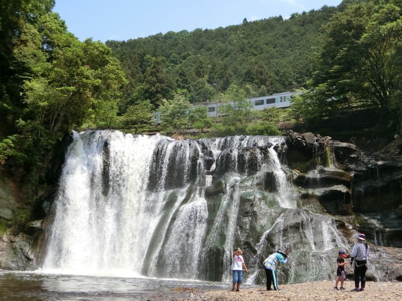 上手く時間を合わせると 滝の上を電車が走る写真が撮れます